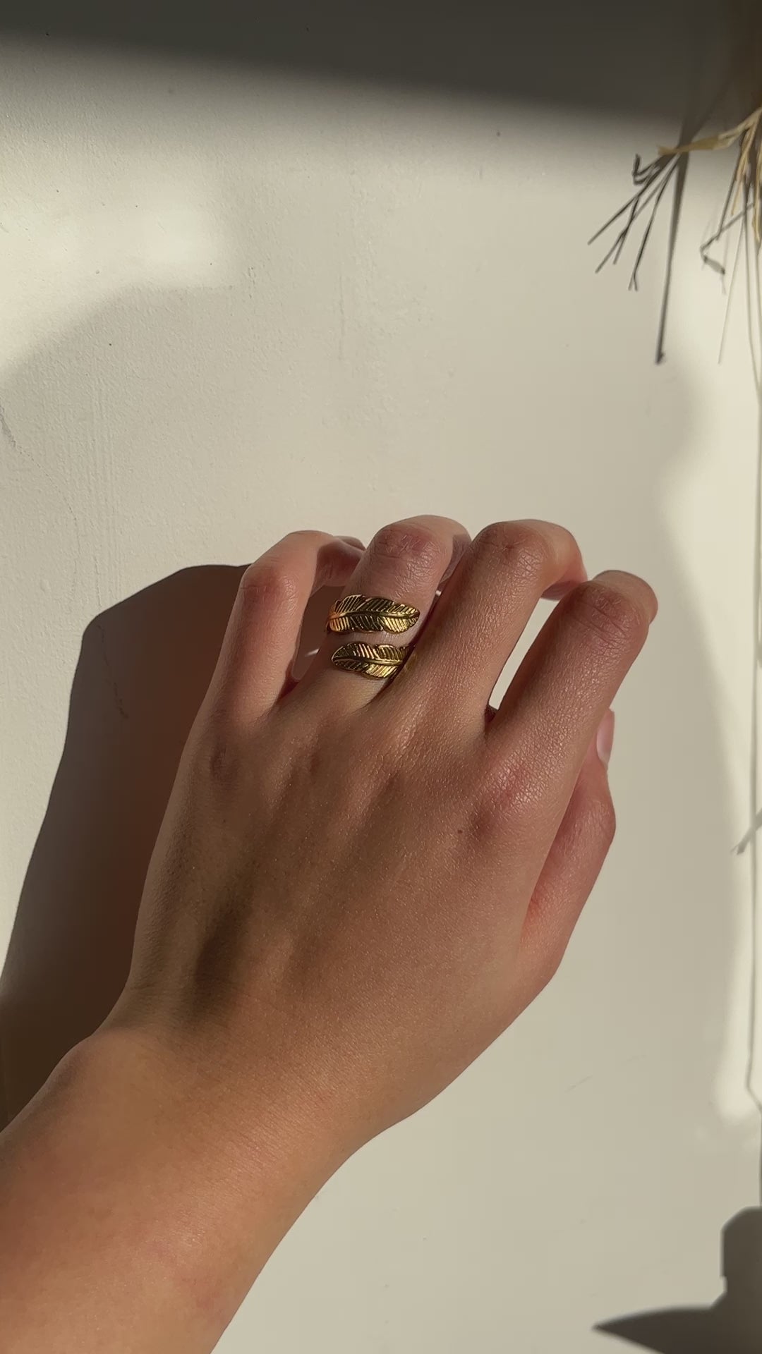 Inspired by nature, this captivating ring features two layers of intricately designed leaves that wraps around your finger.