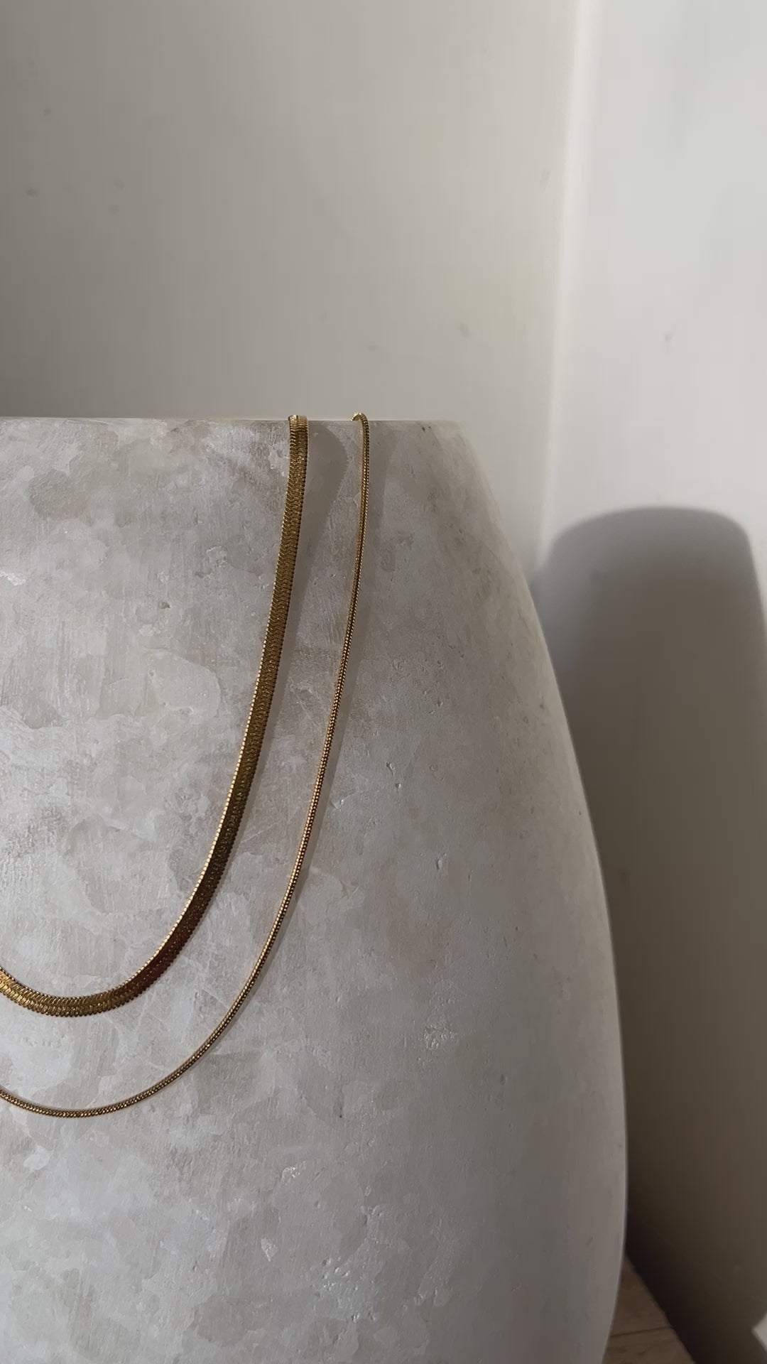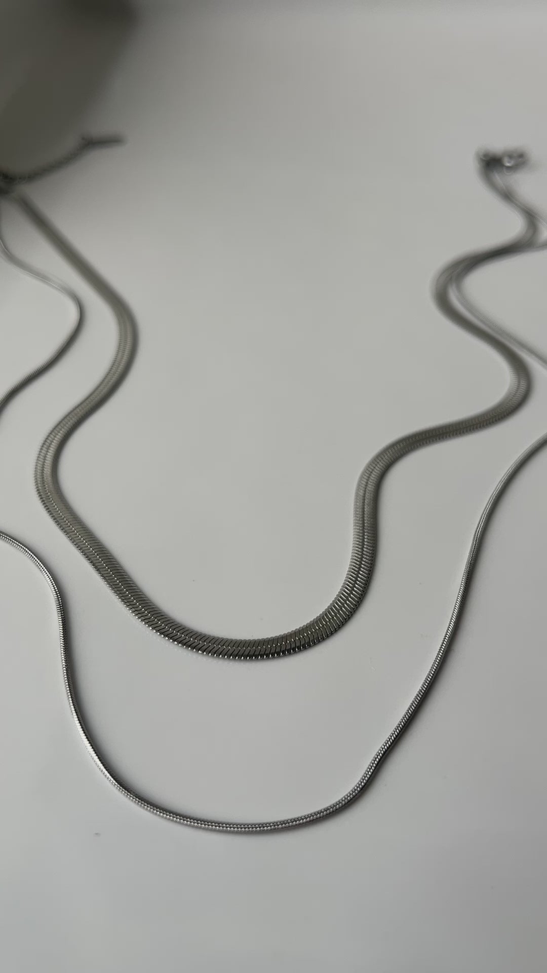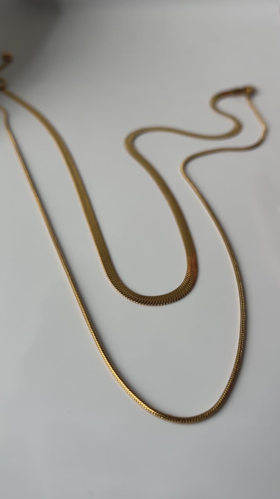 This classic flat chain paired with a thin minimalist chain is a 2 in 1 piece that saves you time and coordination effort when you don't want to spend time matching.