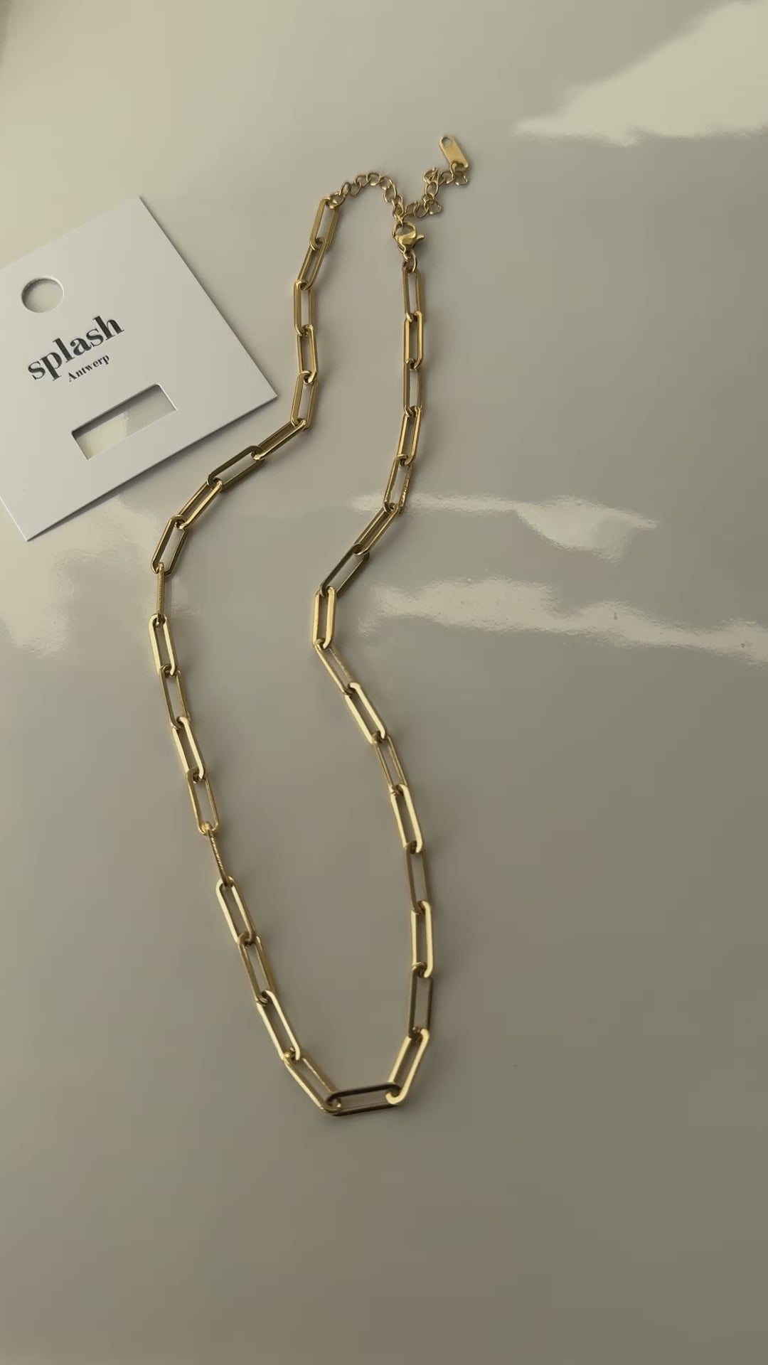 Featuring delicately interlinked paperclip-style chains, this piece blends timeless sophistication with a trendy edge. Pair it with our matching bracelet and earrings for a cohesive, polished look. Perfect for layering or as a stand-alone statement!